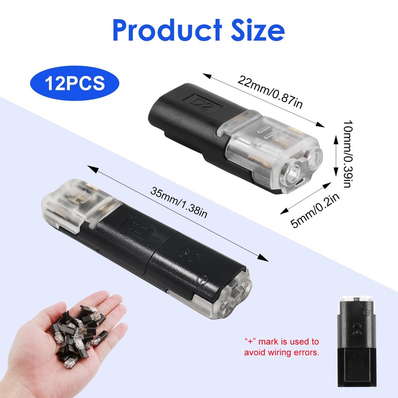 - 【Convenient Packaging】: you will receive 12 compact 2 pin connectors, which are easy to store. These lightweight and handy connections are ideal for DIY projects and connecting LED fairy lights, but also provide a simple solution for everyday applications.
