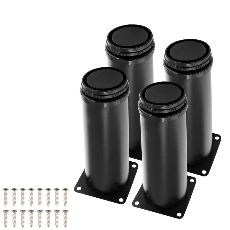 - ✿Adjustable Furniture Legs: Package contains 4 x adjustable furniture feet and 16 x mounting screws. Adjustable cupboard legs height: 100mm / 4", adjustable height range: 0 - 15mm / 0 - 0.6", screw size: M4 x 16mm, tube diameter: 50mm / 2", mounting base size: 60mm x 60mm / 2.36" x 2.36".