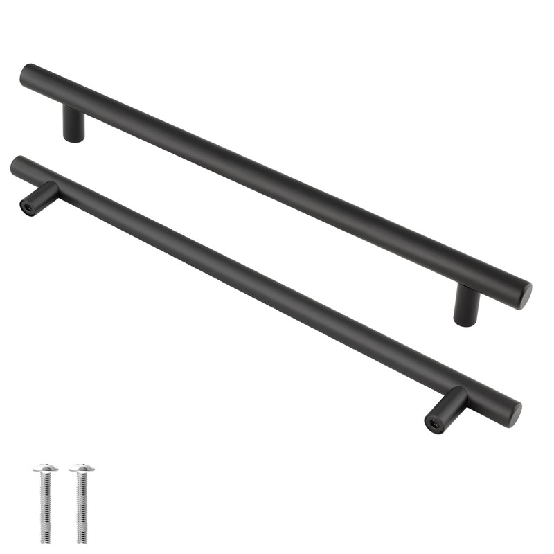 - ✿T Bar Kitchen Cabinet Handles: Package contains 6 x t bar kitchen cupboard handles with mounting screws, Colour: Matt Black, Overall Length: 200mm / 8 inch, Height: 32mm / 1 1/4 inch, Bar Diameter: 12mm / 0.47 inch, Center to Center: 128mm / 5 inch. Each wardrobe door handles pack separately to avoid damage.