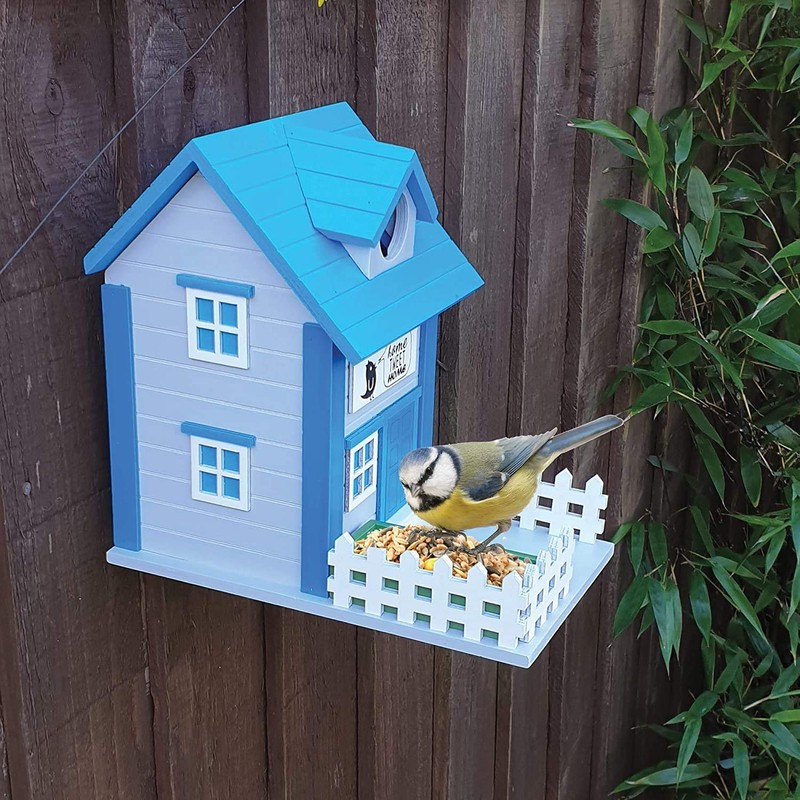 CKB LTD Blue Wooden Birdhouse and Deed Feeding Station Feeder Bird House Nest...