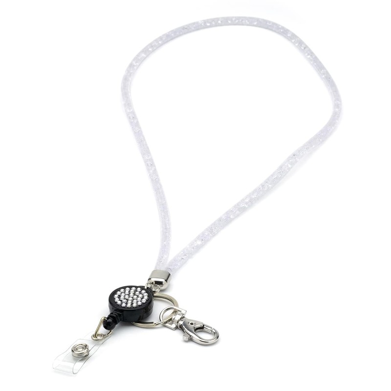 - The sparkle lanyards consist of quality nylon mesh cord that holds attractive resin rhinestones, This beautifully designed accessory is perfect for adding a stylish flair to your everyday routine. Perfect for holding ID badges, keys, or any small essentials. The retractable badge holder reel is ideal for holding a swipe access card or house keys.