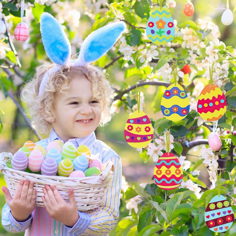 - [Cute Easter Egg Crafts Kit]: You will get 12 pcs Easter Egg Mix & Match Ornaments,cute assorted template designs and bright colour choices. Make your Easter more interesting!