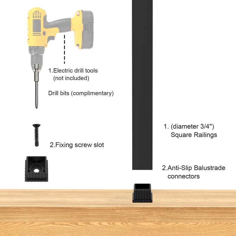 - 【Deck railing connectors included】: These aluminum spindles are 26" in length, diameter=3/4", thickness=1.2mm, package includes: 30 Aluminum square Deck Railing, 60 square baluster connectors, 60 screws, 1 x drill bit, can be used for horizontal deck, great for newbies to build their own deck railing system!