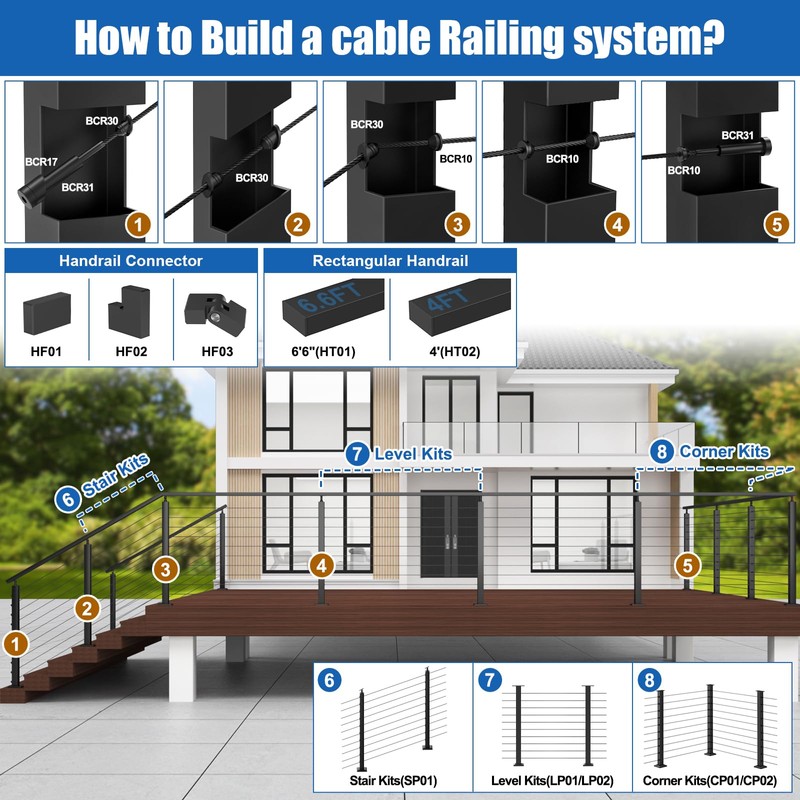 - BUILD AN ALL-BLACK CABLE RAILING SYSTEM: Achieve modern luxury and elegance with an all-black railing that enhances safety and aesthetics, especially on decks and terraces of mountain cabins. Pair this handrail with our CKE all-black cable railing post kits to create a sleek, cohesive cable railing system. Visit our store to find more accessories that perfectly fit your project