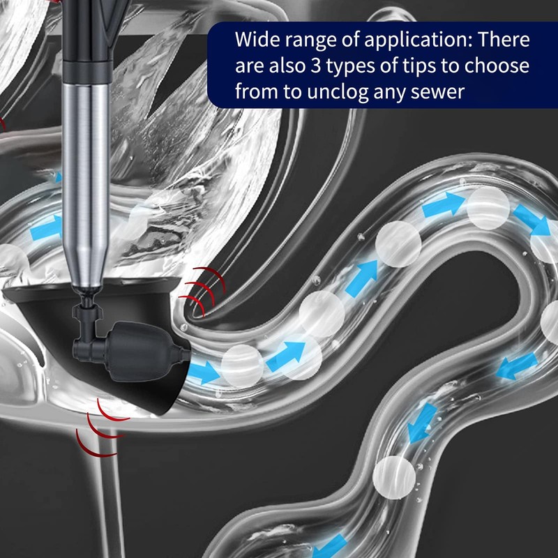 - Environmental protection: There is no need to use toxic chemicals that can corrode pipelines or endanger family members. The pneumatic pressure gun uses air to apply pressure to the water in the pipeline, flushing blockages, and making cleaning easier. Stainless steel pipe wall, more sturdy and durable.