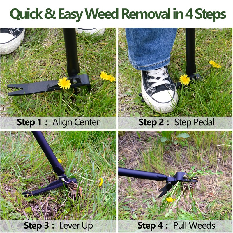 - Stand-Up Long Handle Tool: Made in heavy-duty manganese steel, the weed puller allows for comfortable, upright operation. The ergonomic advantage significantly minimizes back and knee strain, suitable for gardeners of any age to clean your yard