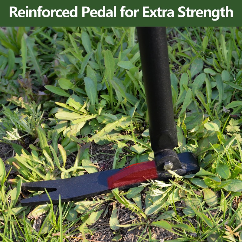 - Thickened Pedal: Equipped with a robust, thickened foot pedal, this weeder tool offers great leverage, transforms weeding into a efficient process, enabling you to drive it into tough soil effortlessly, helping you maintain a tidy garden