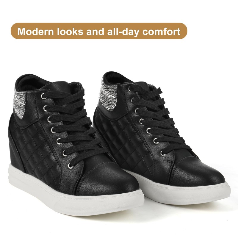 - 【Business casual shoes for women】Fashion sneakers featuring a round toe, high top, soft uppers, hidden wedge platform, and lace up closure for effortless and easy-to-put-on.The wedge sneakers are perfect for a day out on the town, working, street, doing every day errands.