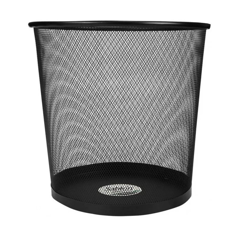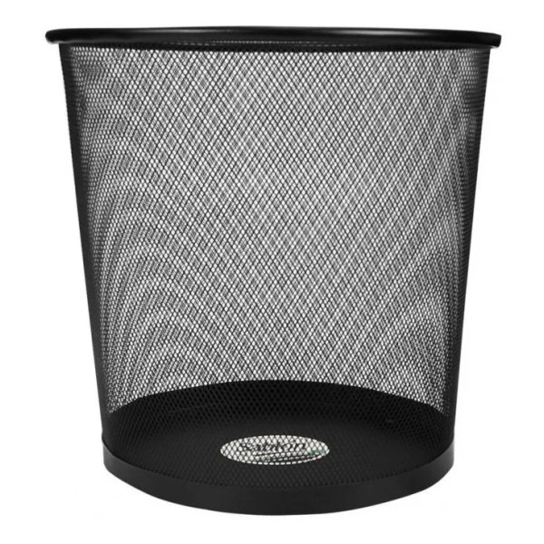 Hecho de malla de alambre de acero duradero en negro; reforzado con base de metal sólido y bordes sólidos a lo largo del borde inferior y superior.