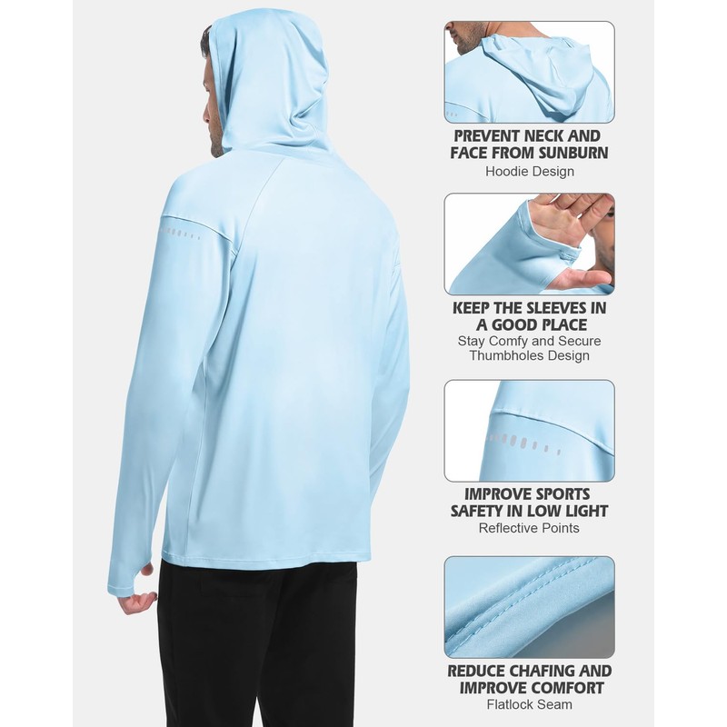 - 🔅UPF50+ Sun Protection & Breathable Defense: Defend against UV rays with our sun hoodie men trust! UPF50+ fabric blocks 98% of harmful sunlight while staying featherlight and breathable—ideal for fishing or workouts. Unlike bulky options, this uv shirts for men prioritizes airflow to keep you cool dry and protected under intense sun.✨Tips:This hoodie has a loose fit. If you want a more fitted look, we recommend choosing a size smaller than you normally would!