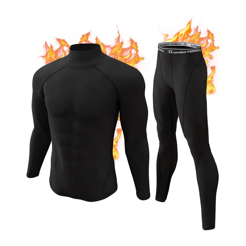 CL convallaria Thermal Underwear for Men, Long Johns Winter Hunting Gear Sport Base Layer Top and Bottom Set Midweight Black L