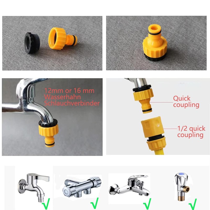 - 【Multifunctional use】: suitable for connecting most standard hoses or taps. Widely used in garden irrigation, balcony irrigation, car washing. Suitable for car washing, agriculture, lawn, garden irrigation, parks, theme parks, etc.