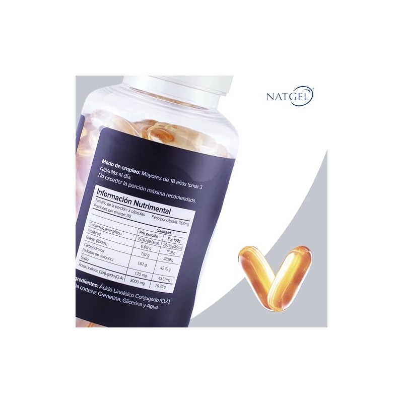 CLA | Acido Linoleico Conjugado | 90 Capsulas Softgels de 1,300 mg | Pre Entreno | Natgel