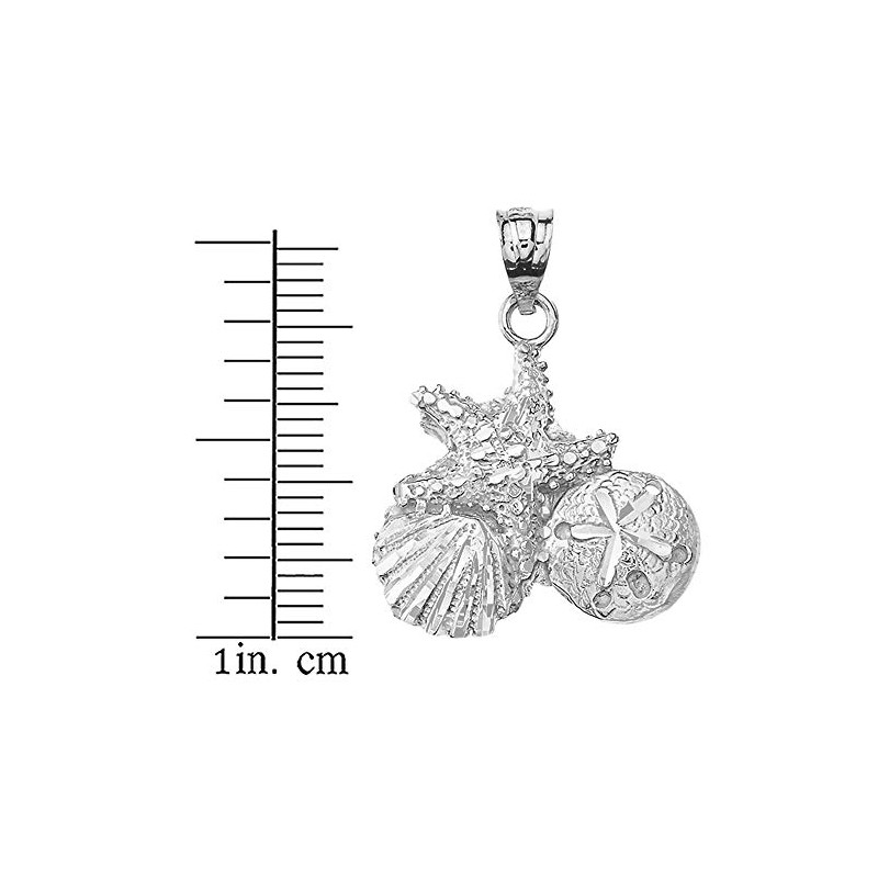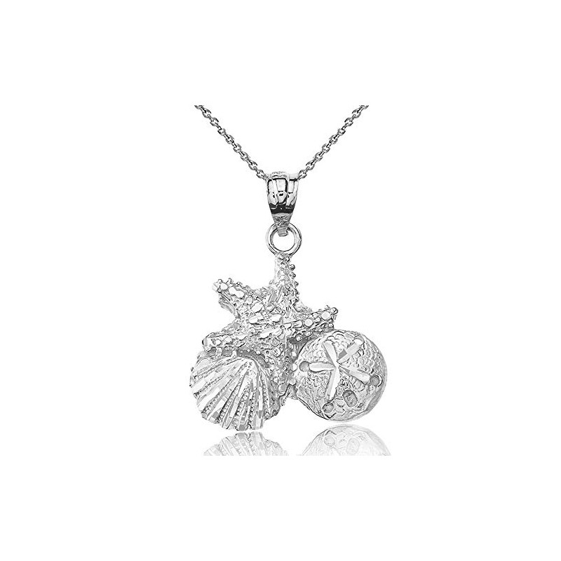 Claddagh Gold - 925 Sterling Silver Starfish Cockle Sea Shell and Sand Dollar Pendant Necklace, 16"