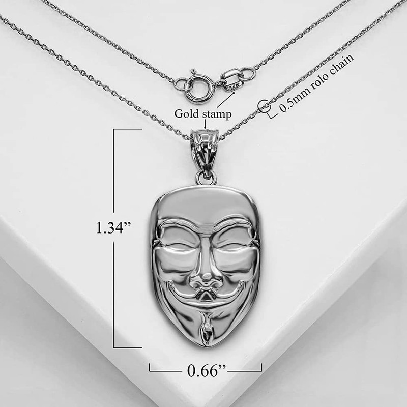 Claddagh Gold - Certified 925 Sterling Silver V for Vendetta Anonymous Mask Hip Hop Charm Pendant