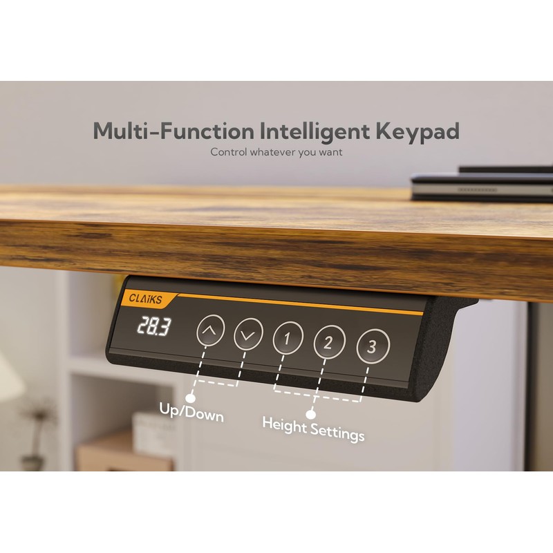 Claiks Electric Standing Desk, Adjustable Height Stand up Desk, 24x48 Inches Sit Stand Home Office Desk with Splice Board, Black Frame/Rustic Brown Top