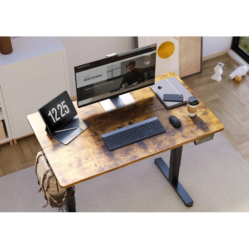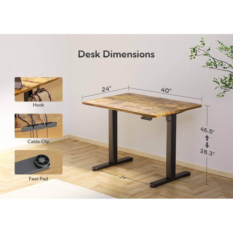 Claiks Electric Standing Desk, Adjustable Height Stand up Desk, 40x24 Inches Sit Stand Home Office Desk with Splice Board, Black Frame/Rustic Brown Top