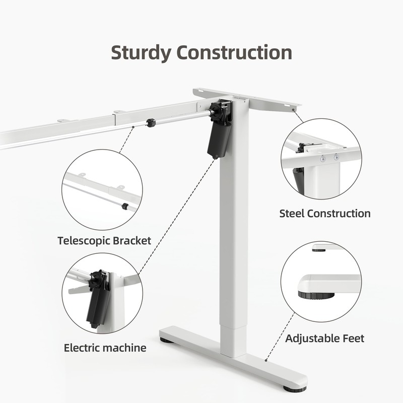 1. Adjustable Workstation Legs: Designed for DIY standing desk, this ergonomic electric T-shaped desk frame gives you the height adjustment you want. The height range is: 28.3"-46.5"