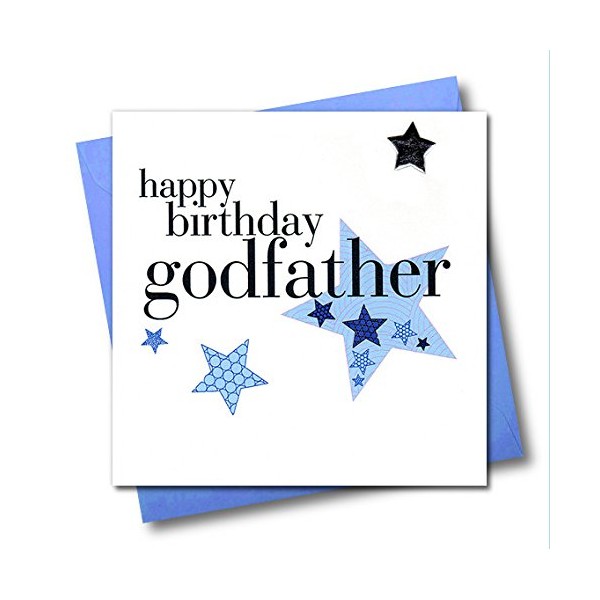 Claire Giles Hearts and Stars Happy Birthday Godfather Card,blue