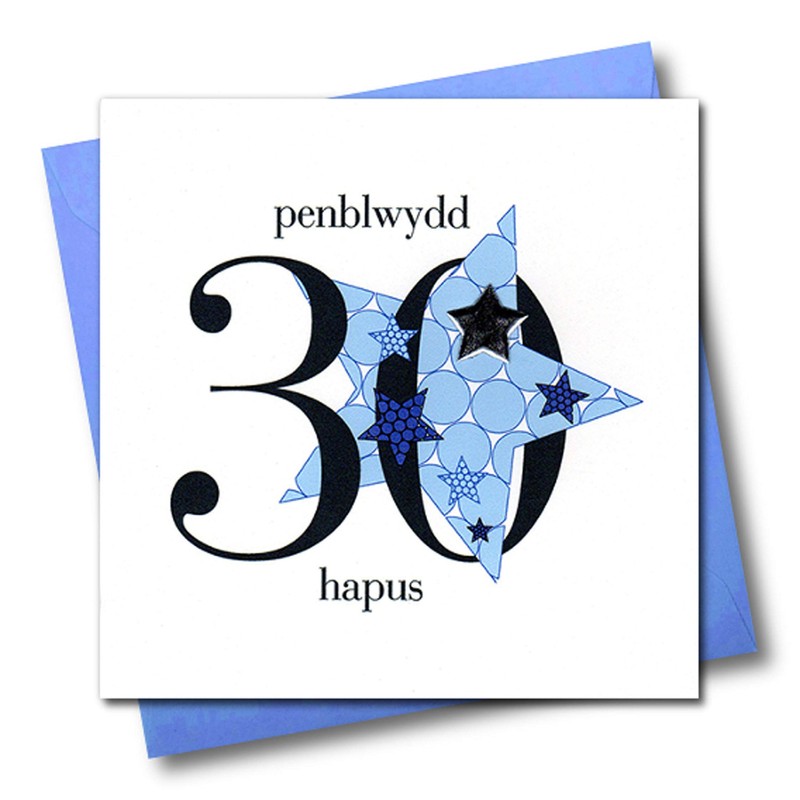 Claire Giles Hearts and Stars Welsh Penblwydd Hapus Happy 30th Birthday Card - Blue