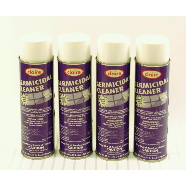 Claire Lot of 4 Claire Germicidal Antibacterial Cleaner & Deodorizer 19oz Aerosol Cans