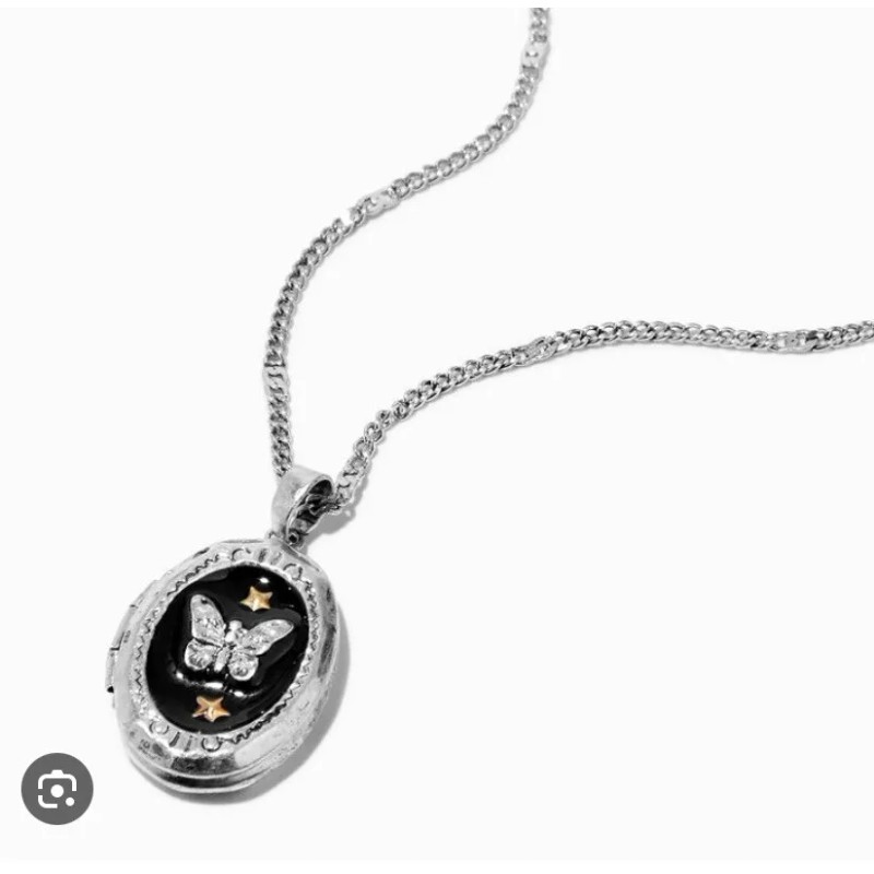 Claire’s burnished silver butterfly gold star locket necklace jewelry nwt