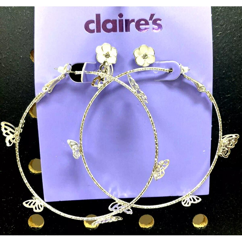 Claire's Claire’s Girls 2 Pair of Silver Earrings White Flower Studs & 3D Butterfly Hoops
