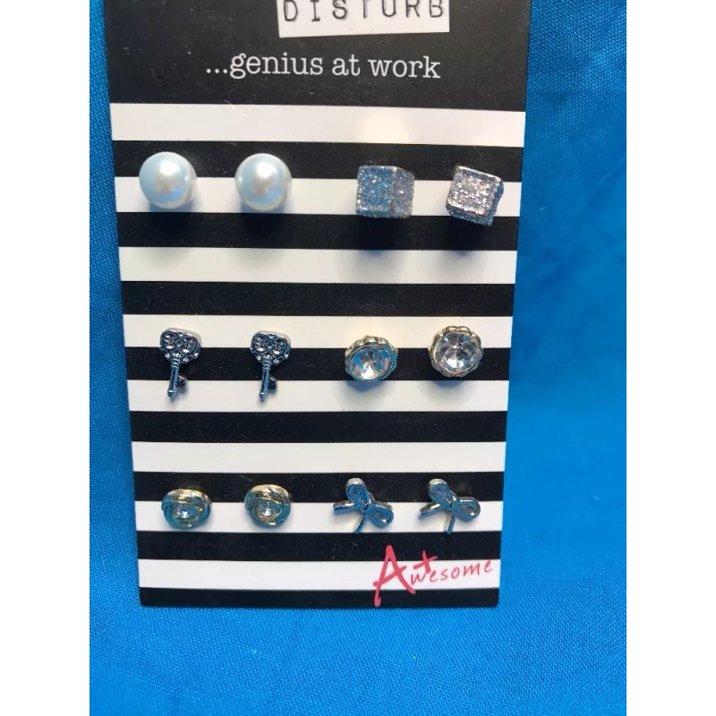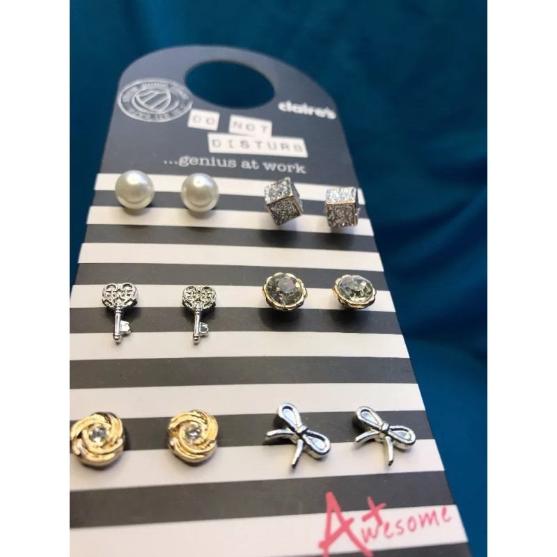 Claire’s Six Pairs Of Claire's Bling Key Bow Stud Cube And More Pierced Earrings New!