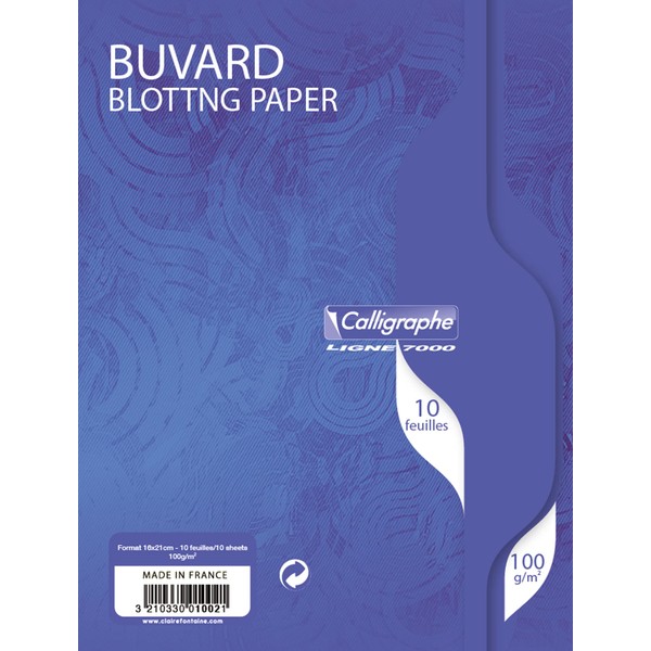 Clairefontaine 1002C - Pack of 10 Sheets of Blotting Paper Calligraphe, 16 x 21 cm, 100 g, Ideal for School and Calligraphy, White, 1 Pack