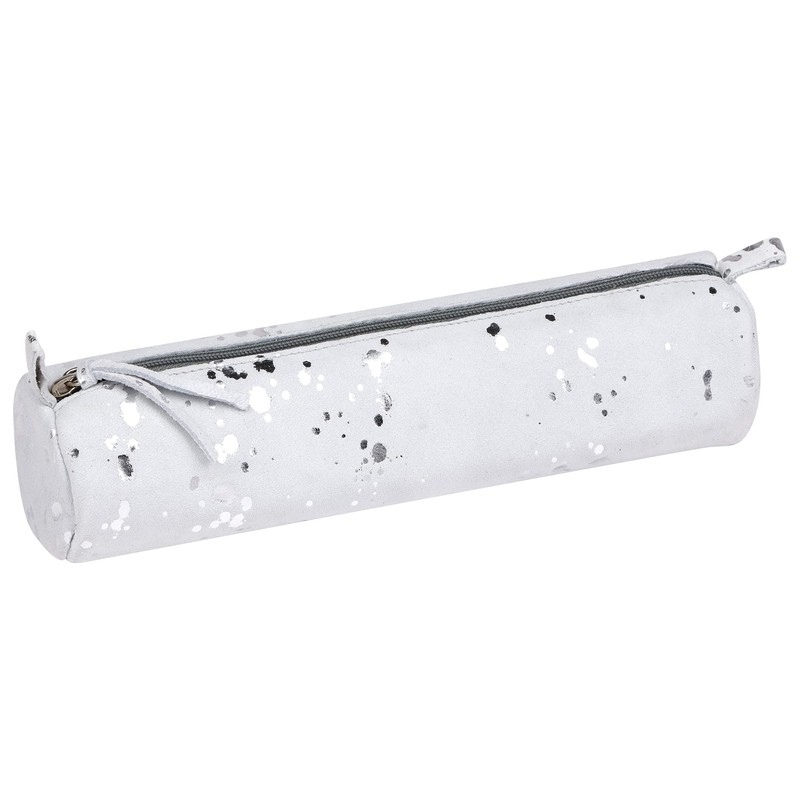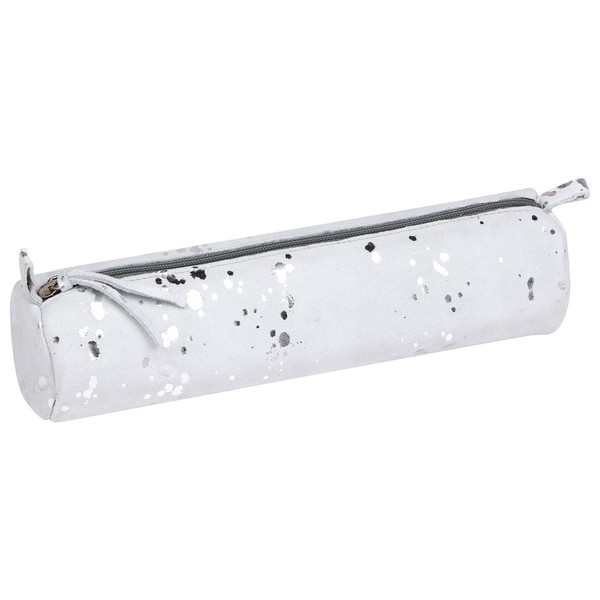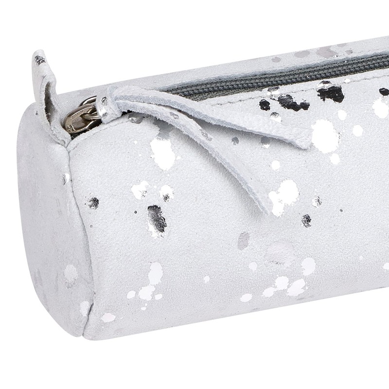 Clairefontaine 400061C Pencil Case Round (Cosmicuir Lamb Suede Diameter 5.5 x 22 cm) Printed Silver