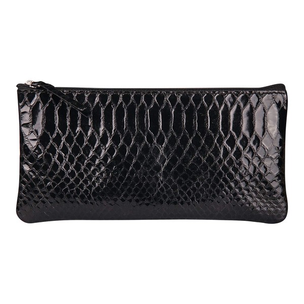 Clairefontaine 410181C Flat Lambskin Pencil Case with Python Pattern 22 x 11 cm Ideal for School Accessories and Make-Up, Black, Pack of 1