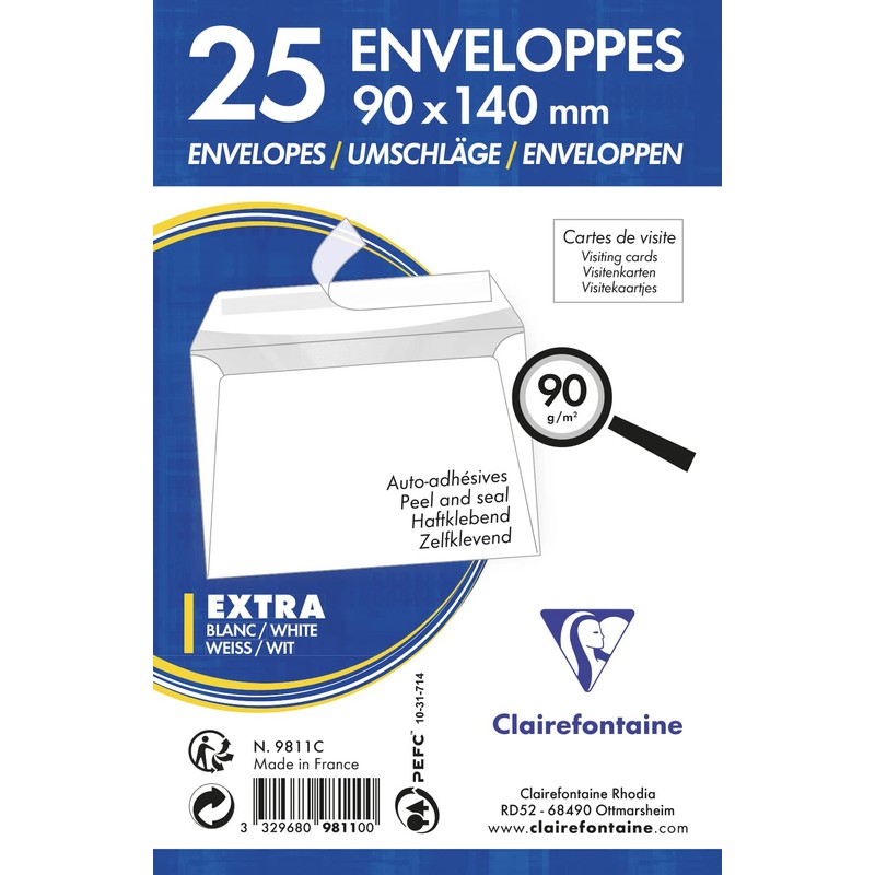 - Discover the assortment of envelopes from Clairefontaine: the envelopes from Clairefontaine stand for quality, elegance and excellence. Envelopes in pure white, with premium quality paper from Clairefontaine.