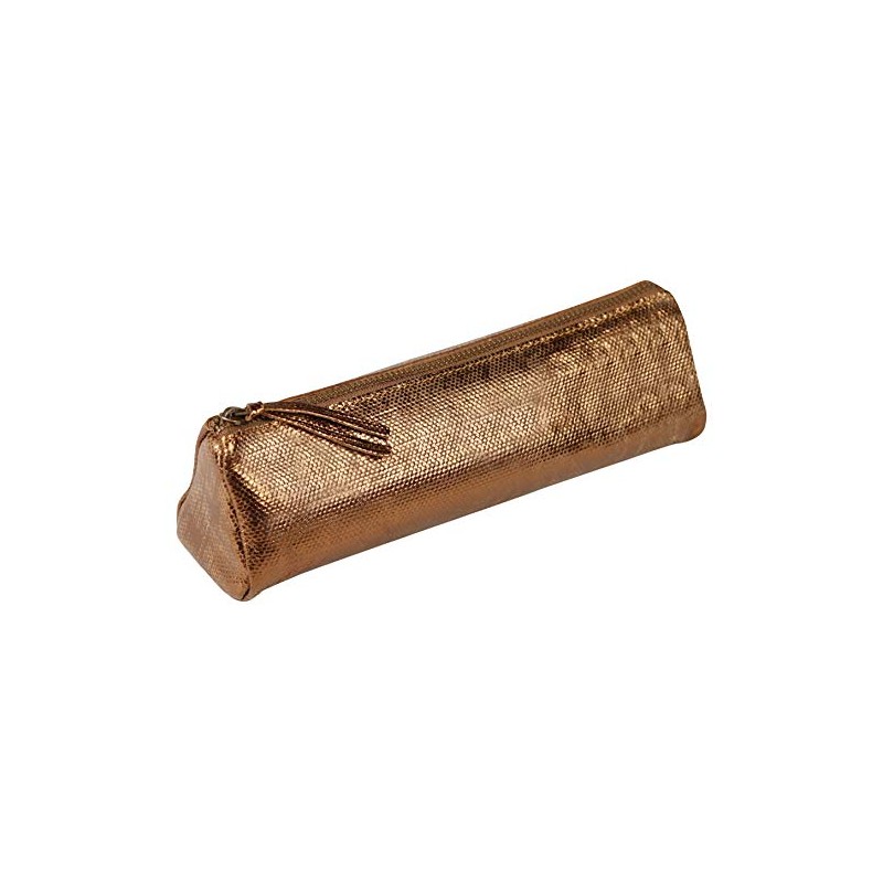 Clairefontaine - Ref 410042C - Kleo-Pathra Leather Triangular Pencil Case - 22 x 6 x 6cm, Made From Genuine Lambskin Leather, Metal Zip With Leather Puller - Bronze