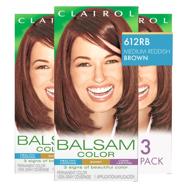 Clairol Balsam Permanent Hair Dye, 612RB Medium Reddish Brown Hair Color, Pack of 3