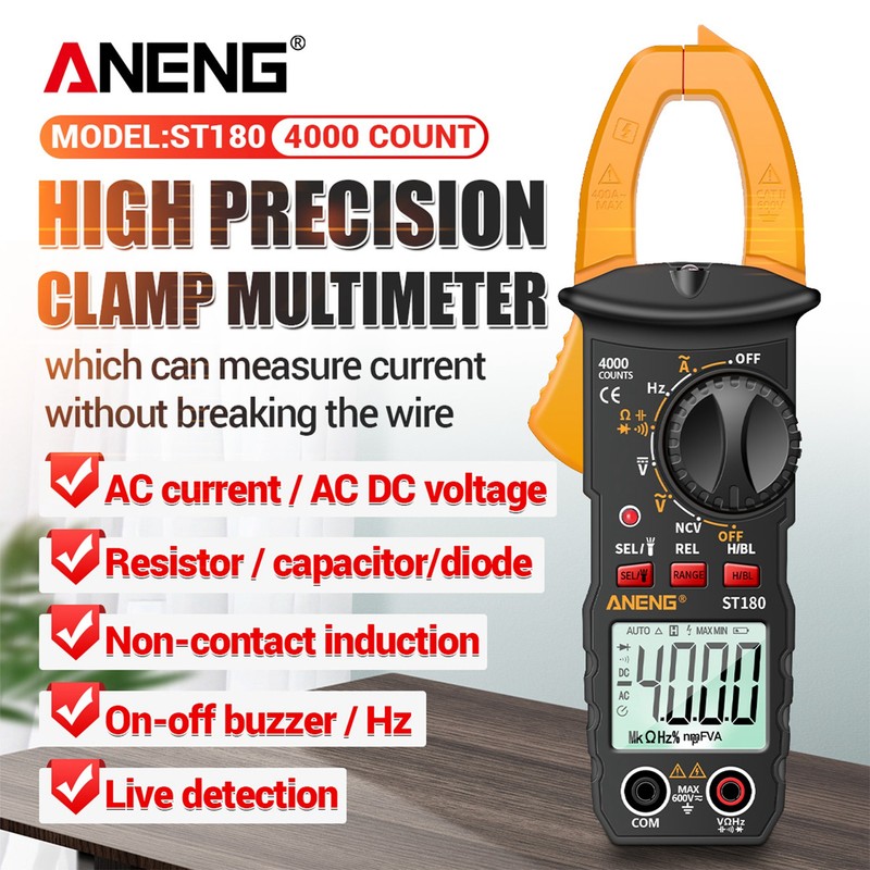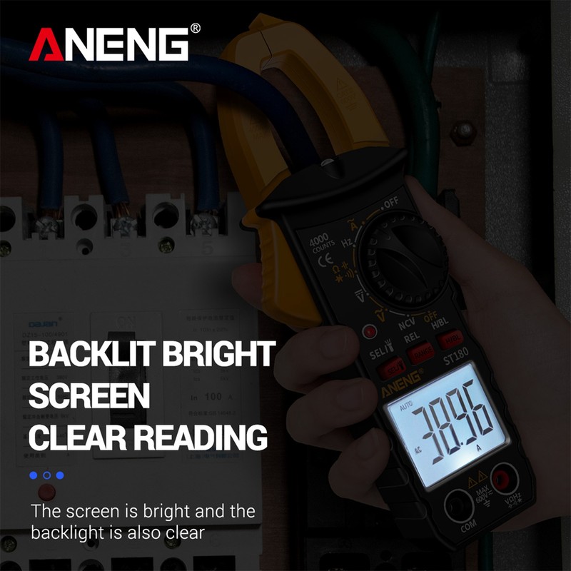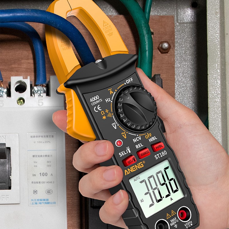 1、Multifunctional Clamp Meter: can be used to measure AC current, AC/DC voltage, resistance, capacitance, frequency, diode, on off buzzer, live detection. 2、High Accurate Clamp Multimeter: auto ranging clamp on multimeter can measure current without breaking the wire. 3、Backlit Bright Screen for Clear Reading: HD bright screen with backlight ON/OFF switchable for display data clearly. 4、Data Retention: hold the measured data for conveniently checking or writing down data. 5、High Reliability and Efficiency: LED buzzer alarm with good reliability, really practical for electrical equipment testing and maintenance. 6、9.7mm Jaw Opening: jaw opening of 9.7mm to measure current without touching or interrupting the circuit. 7、Auto off: powered by 2pcs 1.5V AA battery(NOT included), and the clamp meter will automatically power off after 15 minutes of inactivity.