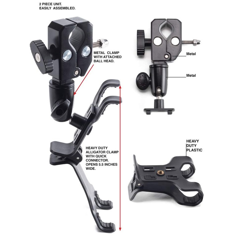 - Made from 80% high quality metal components, which included a 360-degree metal ball head, aluminum alloy clamp, and heavy duty, thick, durable, long lasting phone clamp.