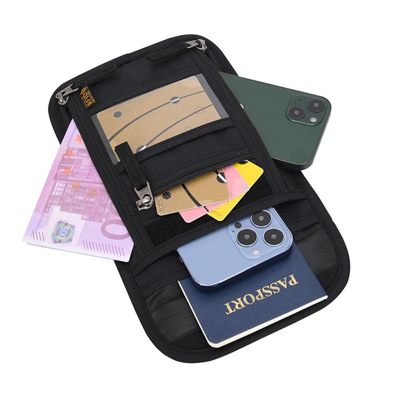 - With 7 pockets, this passport bag offers plenty of space for travel documents, passport, tickets, cards, cash, cell phone and other small items.