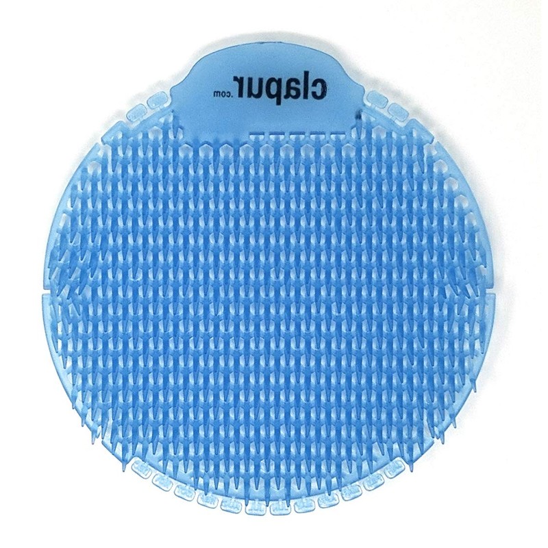 clapur Pro Urinal Sieve Angled Patented Urine Splash Guard Scented Cotton Blossom Urinal Insert for Any Urinal and Urinal Blue Round Pack of 1