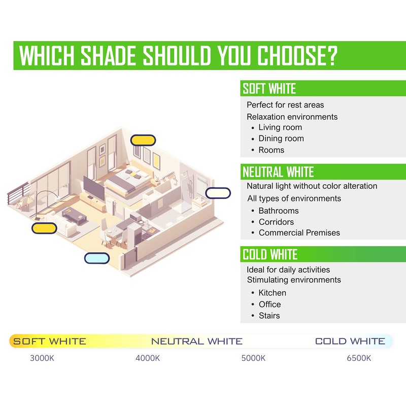 - 8 W E27 LED bulb: replace conventional E27 bulbs with 65 W to 75 W wattage.