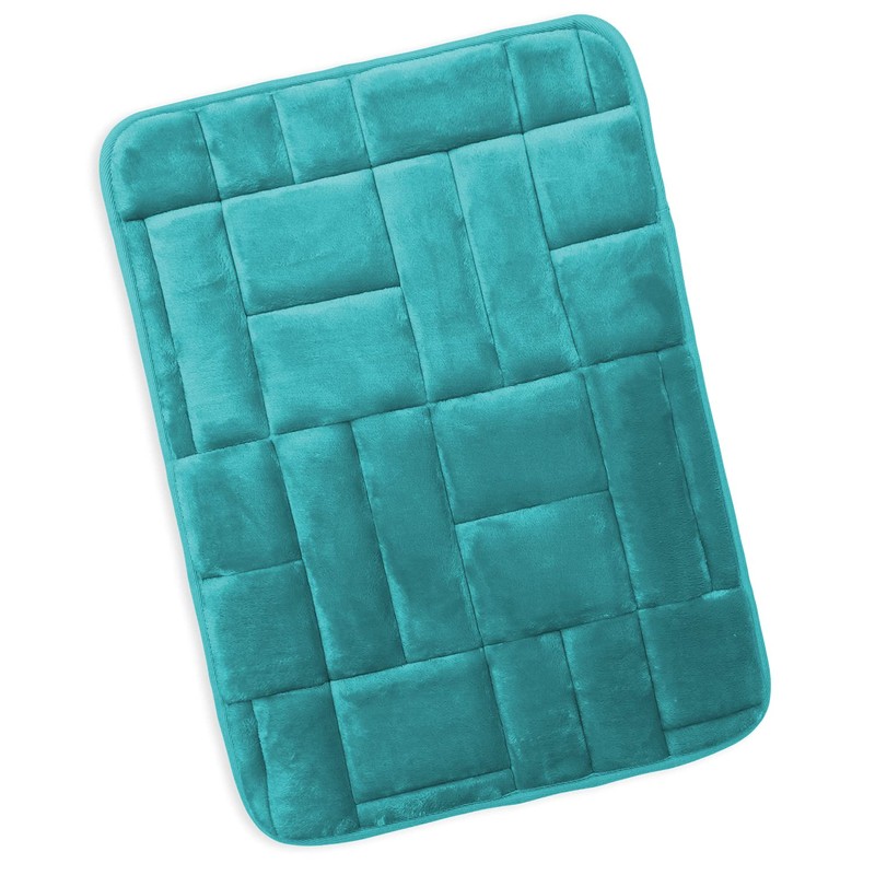 Clara Clark Bathroom Rugs, Velvet Memory Foam Bath Mat, Non-Slip, Machine Washable Bath Rugs - Dries Quickly, Ultra Soft Plush Bath Mats for Bathroom, 17 x 24, Tiled - Teal