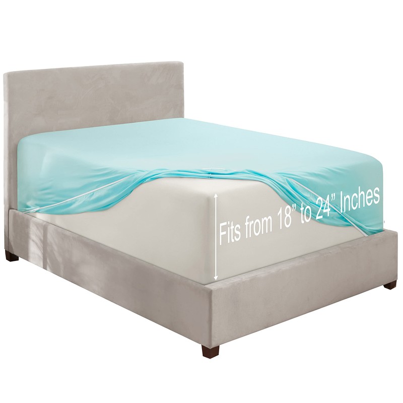 Clara Clark Fitted Sheet, Extra Deep Pocket Fits Deep Mattress, Luxury Soft Fitted Sheet Only, Queen - Extra Deep Aqua Light Blue