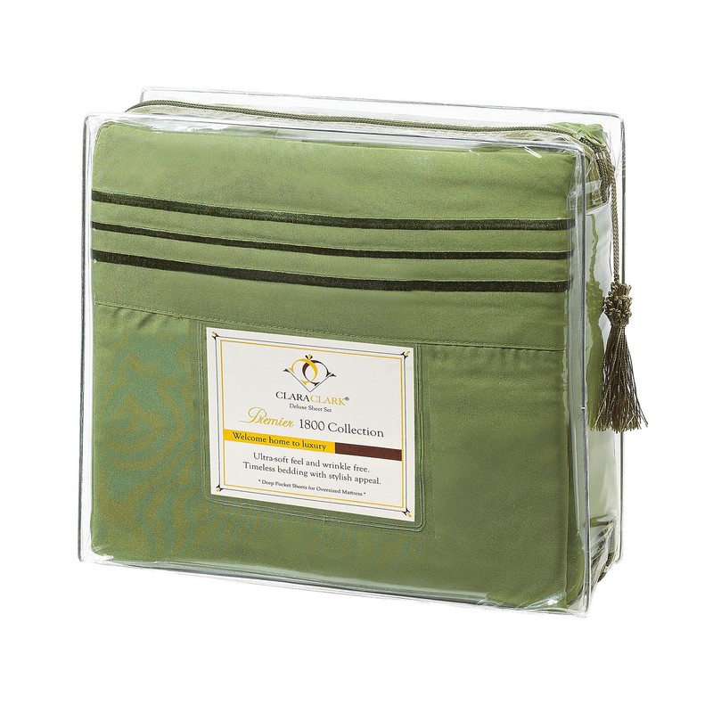 Clara Clark Premier 1800 Series 4 Piece Sheet Set Deep Pocket Brushed Microfiber, Wrinkle, Fade & Stain Resistant, Full Size, Calla Green