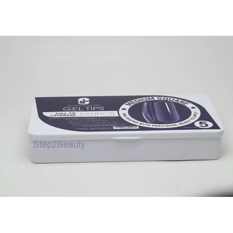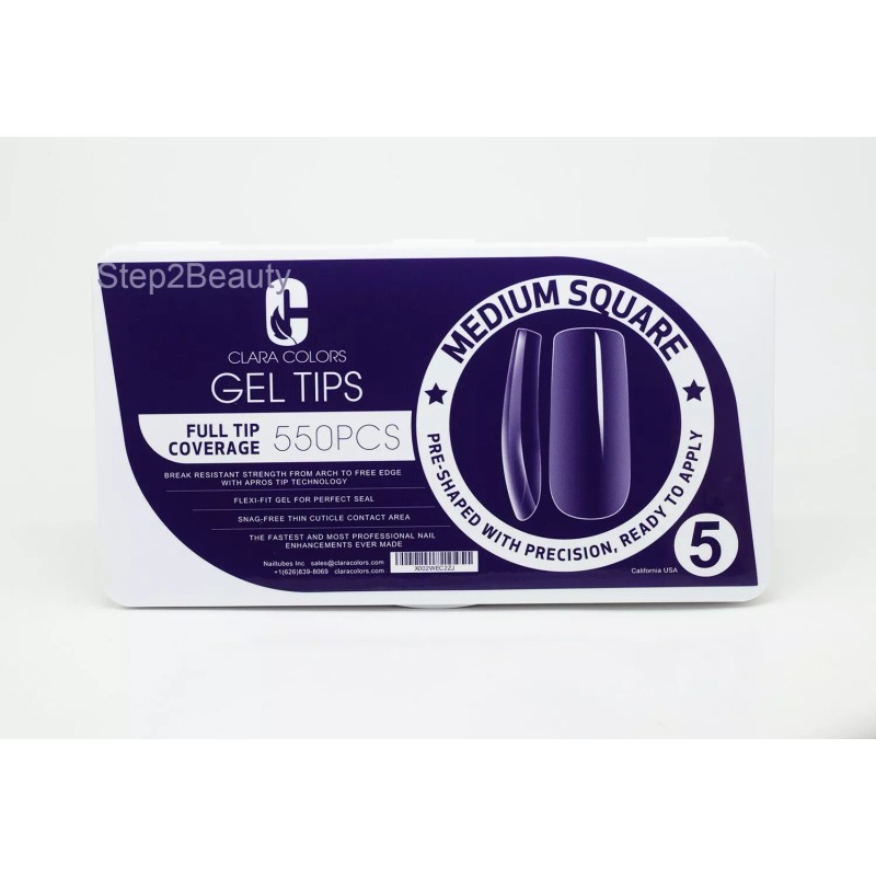 Clara Colors - Full Tip Coverage 550 pcs - Medium Square Gel Tips #5