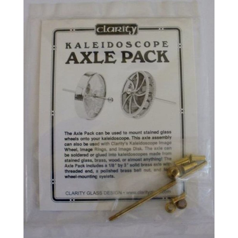 - This axle assembly can also be used with Clarity's Kaleidoscope Image Wheel, Image Rings and Image Disks. The axle can besoldered or glued into kaleidoscopes made from stained glass, brass, wood or almost anything! The Axle Pack includes a 1/8" x 3" solid brass axle with threaded end, a polished brass ball nut and four wheel-mounting eyelets.