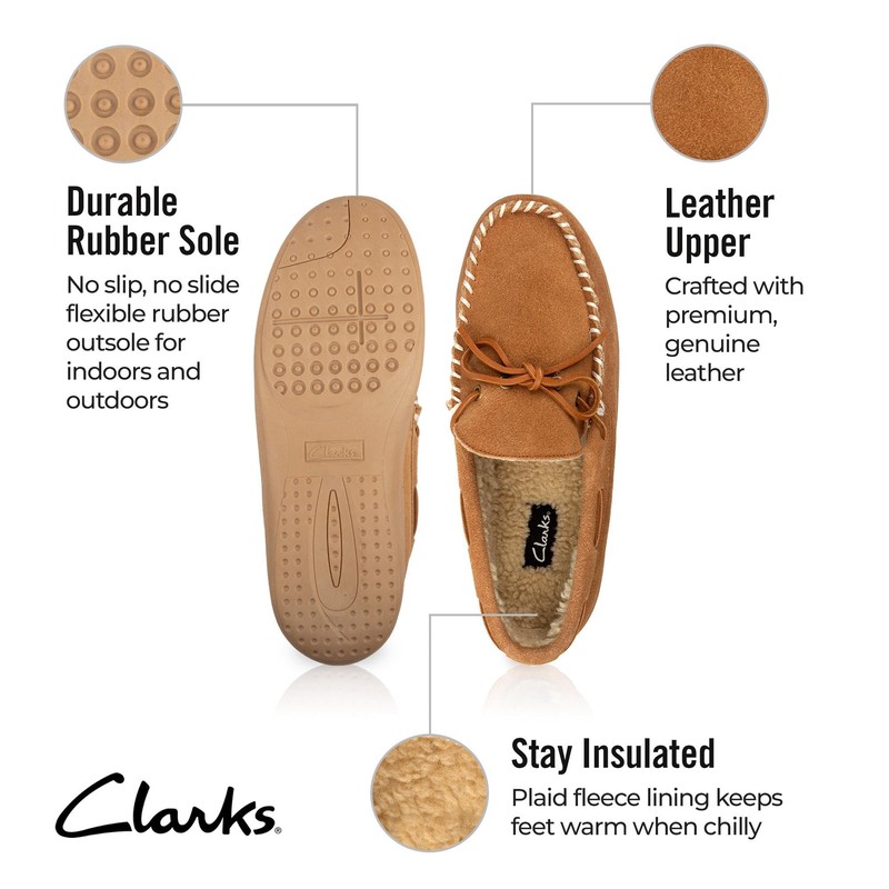 Clarks Men's, Moccasin Sherpa-Lined Slipper CINNAMON 12 M