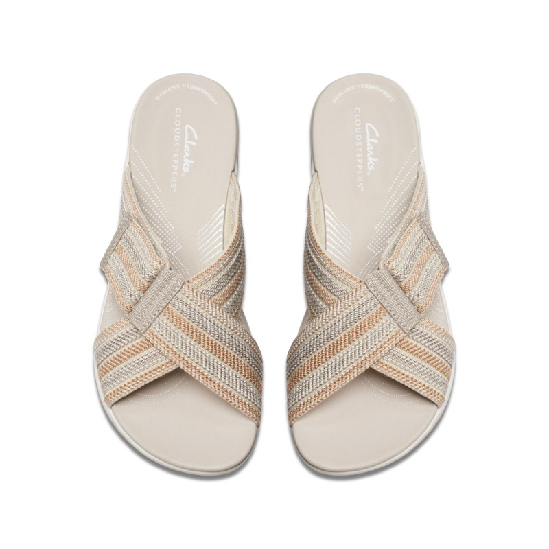 Clarks Women's Arla Wave Slide Sandal, Beige Combi, 3.5 UK