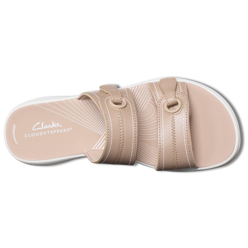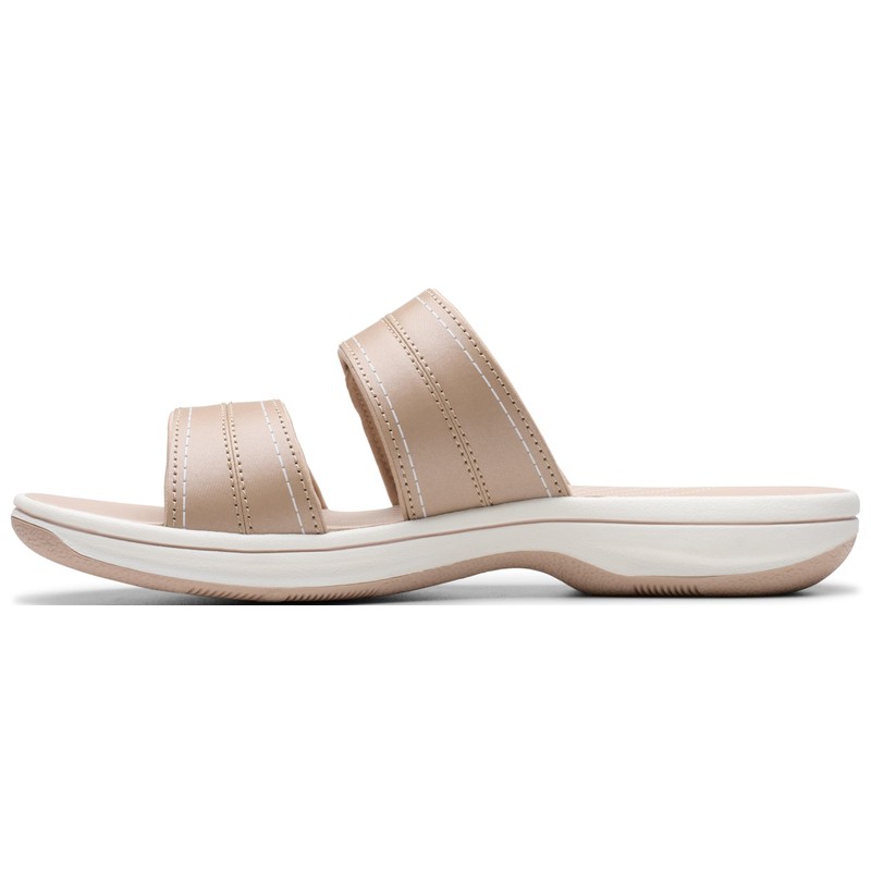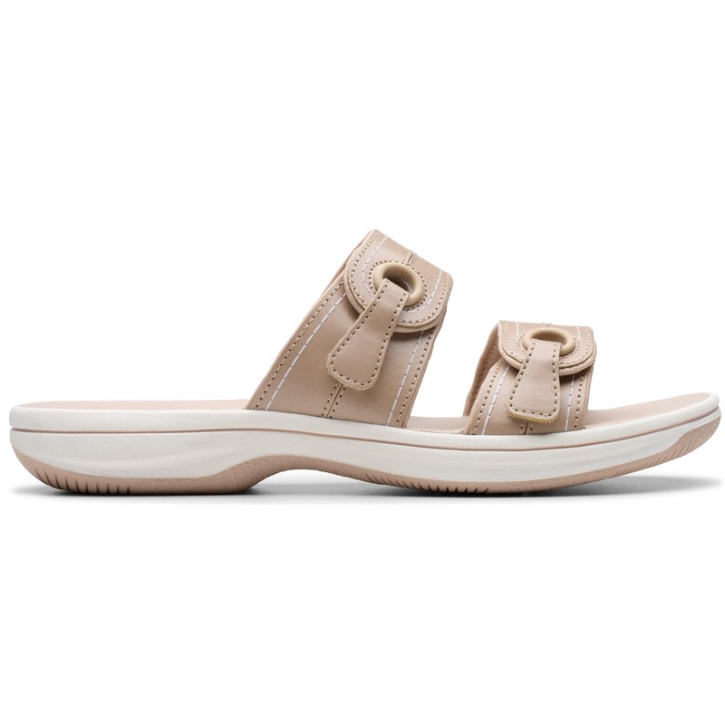 Clarks Women's Breeze Maye Slide Sandal, Sand Synthetic, 9