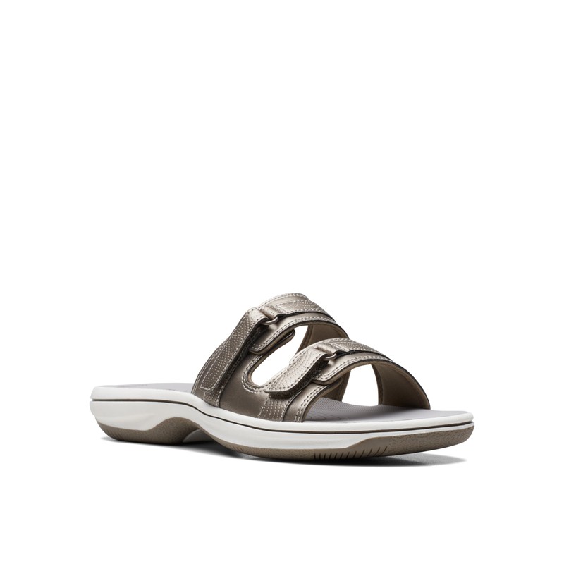 Clarks Women's Breeze Piper Slide Sandal, Pewter Synthetic, 12
