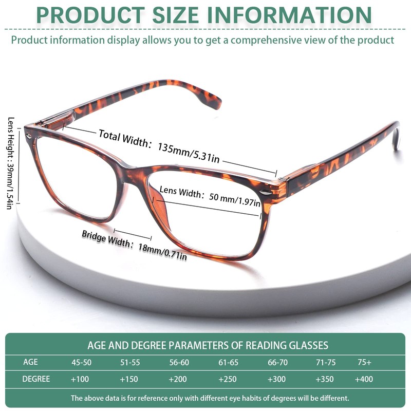 - 【Blue Light Blocker】Our blue light blocking reading glasses can effectively filter harmful blue light from computer or phone screens to protect your eyes, help to relieve your eye tiredness and prevent asthenopia