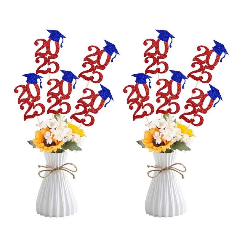 Class of 2025 Graduation Decoration Centerpieces for Table, 2025 Party Centerpieces Grad Cap Sticks Party Supplies, Graduation Party Decoration Toppeers (10 PCS, Red & Blue)